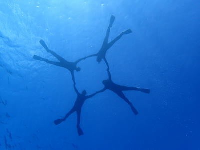 写真は青の洞窟ツアーで撮ってもらったものです。カメラ持ったショップの人が潜りまくってくれました。